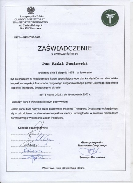 Jako były inspektor Inspekcji Transportu Drogowego, oferuję: